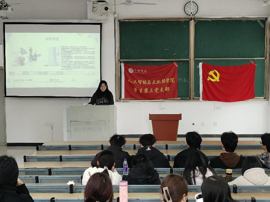 为扎实推进学风建设,促进学生成长成才,营造浓厚学习氛围,切实做好学生的学业指导,形成积极进取、优良互助的学风氛围。3月12日,人工智能与大数据学院学生第三党支部在36栋1阶梯教室开展“小课堂”系列帮扶活动。