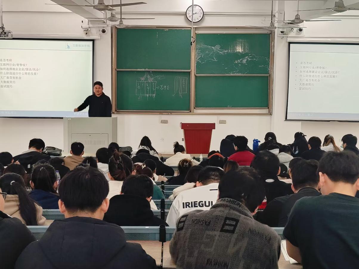 为帮助大学生树立正确的就业观念,强化学生的职业技能,提高其就业能力,2024319人工智能与大数据学院学生第一党支部特邀优秀校友安徽数加信息科技有限公司创始人杨晓伟回到母校为我院大三同学开展就业指导课程。