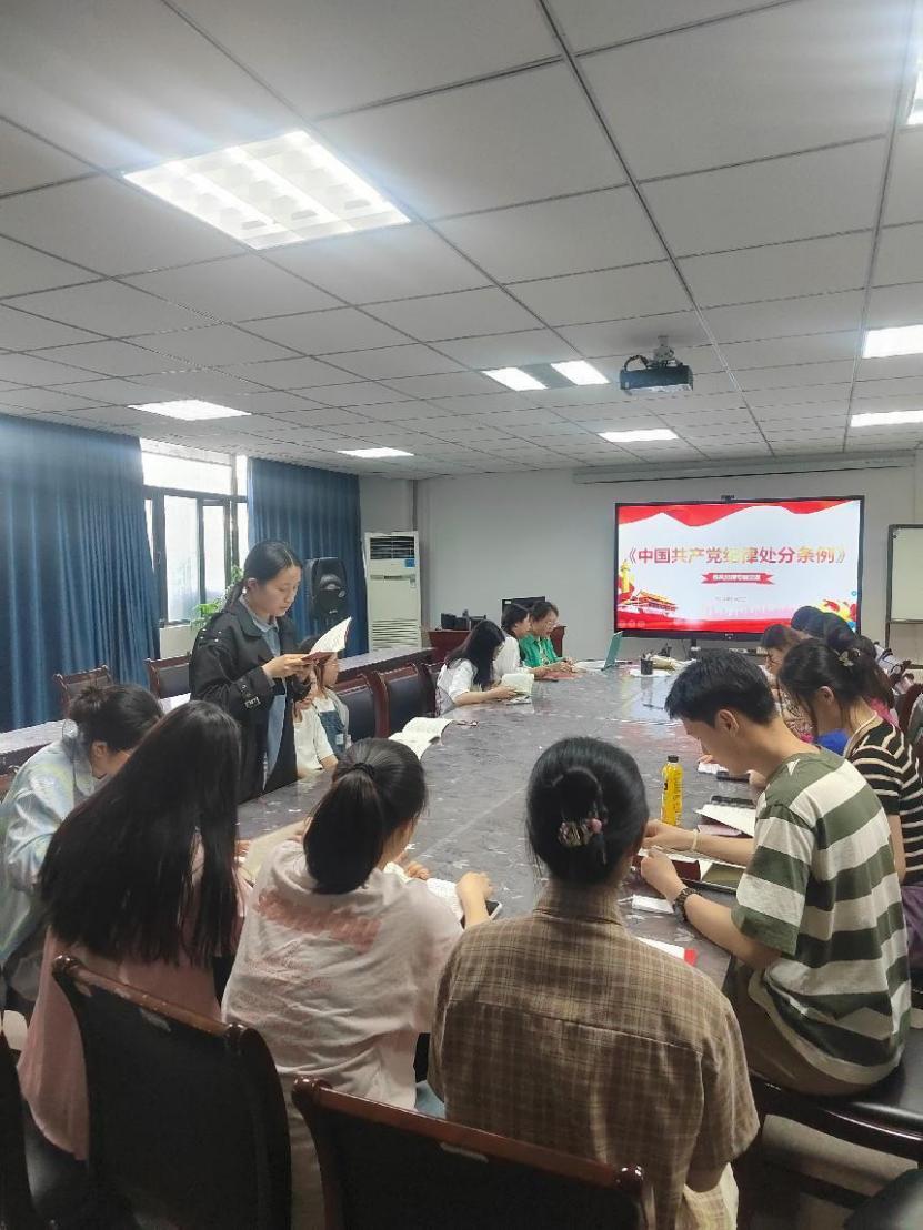 为进一步加强党的纪律建设,提高全体党员干部遵规守纪意识,5月9日晚18点,人工智能与大数据学院学生第四党支部于37栋大会议室召开党员大会,专题学习新修订的《中国共产党纪律处分条例》。本次活动由党员李琪同志主持,以学习《条例》的总体要求和适用范围、违纪与纪律处分、纪律处分运用规则为主要内容,全体党员参加。
