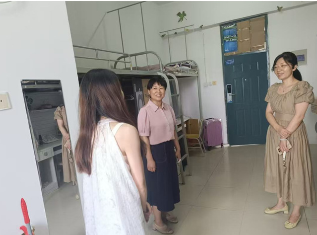 在报道前一天,学院领导班子成员深入一期研究生男生宿舍,仔细查看宿舍的设施设备和实际情况,并在报道当天下午,院领导分别带队走访男生、女生宿舍,为同学们送去新学期的关怀与问候。大家纷纷表示,一定会牢记院领导的嘱托,以饱满的热情投入到新学期的学习和生活中,不辜负学校领导和老师们的期望。