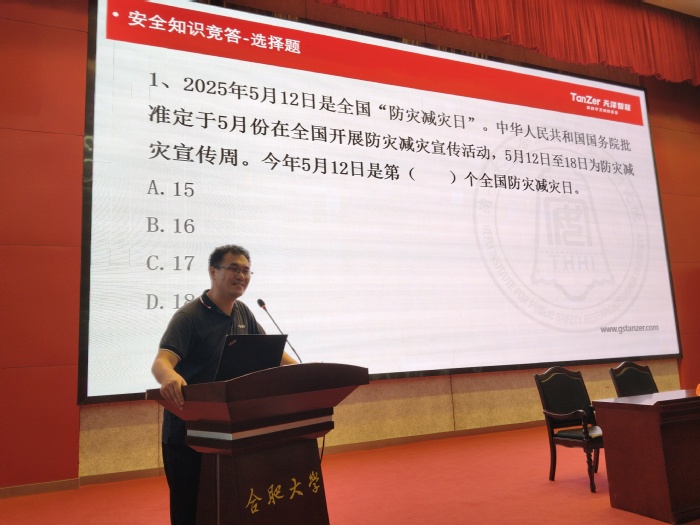 活动由合肥市地震局专家汪丹丹主任开场,他结合案例系统讲解了地震成因、校园防震常识及火灾预防要点,强调“科学避险”的重要性。天泽智联科技股份公司国家一级注册消防工程师魏晓君主任进一步剖析了校园消防隐患,并通过模拟场景演示了灭火器使用、疏散路线规划等实用技能。