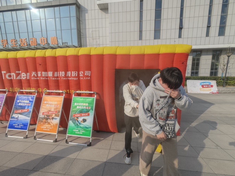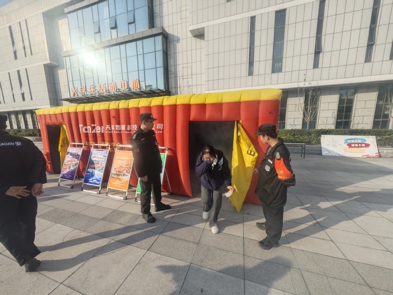 为切实加强师生员工的消防安全意识,普及火灾应急逃生知识,提升自救互救与应急处置能力,根据学校消防安全宣传月活动统一部署,1113日下午,由保卫处、校团委联合校消防维保单位天泽智联科技股份公司共同组织的消防逃生屋体验活动在大学生活动中心南侧广场顺利举行。