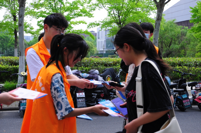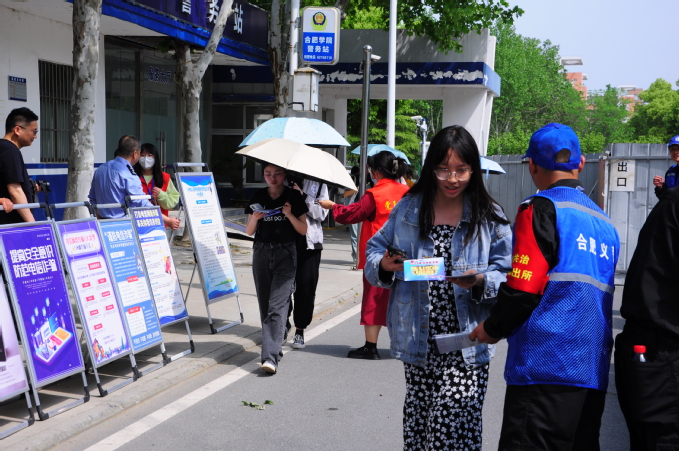 4月18日上午9时30分,我处联合学生处、团委、始信社区居委会、锦绣派出所等多家单位一道,在二区西小门学生通道进行“无诈校园”宣传活动。