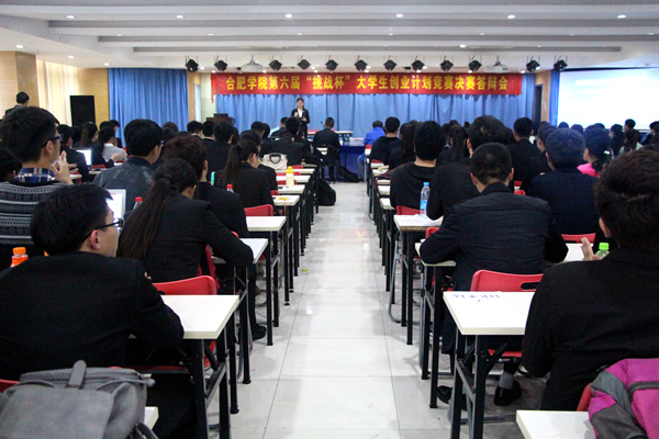 4月7日晚,合肥学院第六届“挑战杯”大学生创业计划竞赛决赛答辩会在大学生活动中心圆满举办,校党委副书记丁明、合肥国家大学科技园总经理张大鸣、安徽万创投资控股有限公司总经理高志华、君合资本董事总经理孙正强、大学生创新创业教育中心主任刘沛平和学生处副处长纪平作为评委出席了此次答辩会。 本届挑战杯比赛我校预报名309项,实际申报作品共计249项,其中创业计划竞赛223项,创业实践挑战赛18项,公益创业赛8项。通过前期网络评审,共有12项创业计划竞赛,8项创业实践挑战赛和5项公益创业赛入围校内决赛,参与现场答辩。