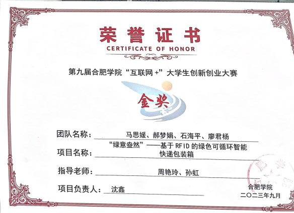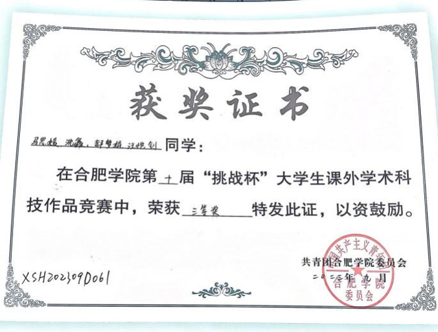 2023年“华骐-绿巨人杯”安徽省大学生生态环境创新创业大赛省三等奖;