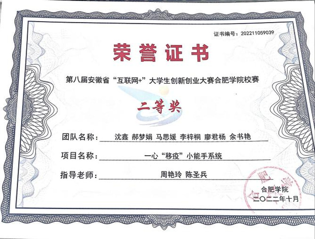 2023年中国大学生计算机设计大赛安徽省级赛三等奖;