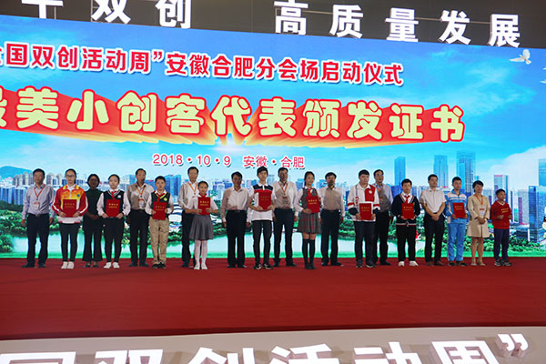 大众创业、万众创新,109日上午,2018全国双创活动周安徽合肥分会场启动仪式在安徽国际会展中心举行,省发改委总工程师笪艺武,省经信委副主任王厚亮,省科协副主席魏军锋出席。市委常委、常务副市长罗云峰致辞并宣布活动启动,市委常委、副市长韩丁主持。我校创业园15名学生作为在肥高校学生代表参加此次“全国双创活动周”开幕式。