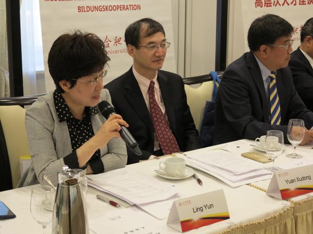 合肥学院党委书记蔡敬民首先致辞。他向李锦斌书记一直高度重视中德教育合作示范基地建设以及人才工作表示感谢!向长期以来,一直支持学校建设与发展的德国教育界和企业界的专家、教授表示感谢!并对正在加速推进中德教育合作示范基地建设的相关工作进行了简要介绍。