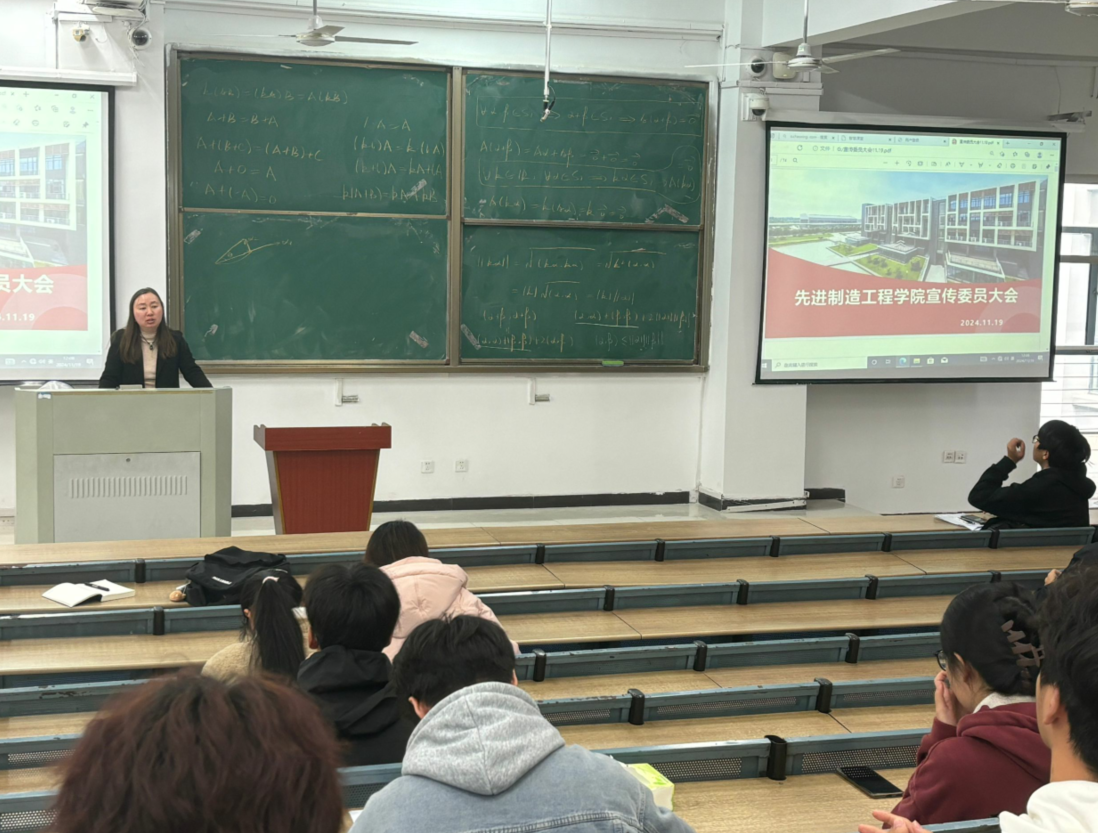 11月19日中午,先进制造工程学院在36栋3阶梯教室召开了本学期各班级宣传委员会议,先进制造工程学院党委书记杜娟主持会议,并提出工作要求,党委副书记、纪委书记蔡灵美及各班级团支书参加会议。
