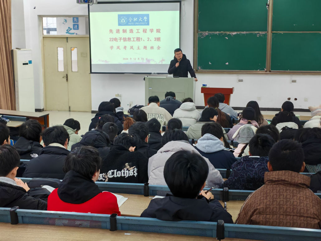 为进一步强化班级学风建设,严肃考风考纪,着力营造积极进取、勤奋好学的学习氛围,20241211日上午,先进制造工程学院在38-3JT教室召开一学风建设与考风考纪主题班会,22级电子信息工程专业全体同学参会。
