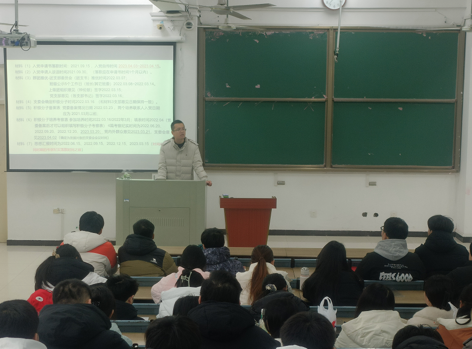威力旺围绕《中国共产党发展党员工作细则》,结合学校组织部发展党员专项检查中发现的问题,发展党员的5个阶段25个步骤的时间脉络入手,详细讲解了入党的标准和条件、入党积极分子的确定和培养教育、发展对象的确定和考察、预备党员的接收、管理、考察和转正等发展党员工作流程与要求,要求各支委成员在校党员档案进行梳理排查,并帮助本学期新发展入党的同志完善入党材料。
