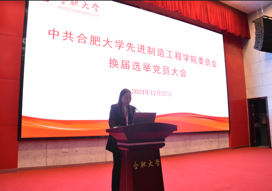 为进一步加强党的基层组织建设,提升党建工作质量,经学校党委批准,2024年12月27日,中共合肥大学先进制造工程学院委员会换届选举党员大会在学术报告厅A厅隆重召开,大会选举新一届党委委员和纪委委员。先进制造工程学院全体师生党员参加会议。