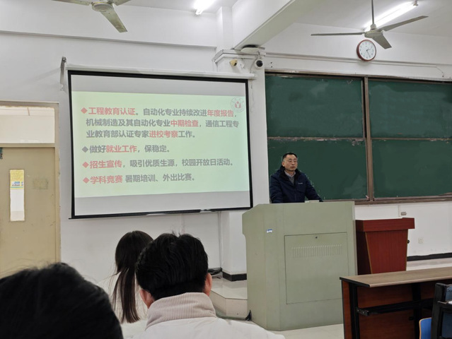 院长胡学友详细介绍了学院2025年的重点工作规划。一是加强师德师风建设,加大力度选树先进典型,通过身边事影响身边人,营造良好的师德风尚。二是强化基层教学组织建设,致力于营造和谐、奋进的工作环境,为教师们提供更广阔的发展空间。三是积极推进高层次人才引进工作,注重校内骨干教师的培养,打造一支高素质、专业化的教师队伍。四是深入推进双元制人才培养模式,并争取在其他专业进行推广,以培养更多适应社会需求的应用型人才。五是全力推进工程教育认证工作,提升专业建设水平。六是加强招生宣传工作,提高学院的知名度和影响力;七是积极组织学科竞赛,培养学生的创新精神和实践能力。最后,胡学友指出学院将认真做好“十四五” 规划总结工作,并科学谋划 “十五五” 发展蓝图,推动学院各项事业持续进步。
