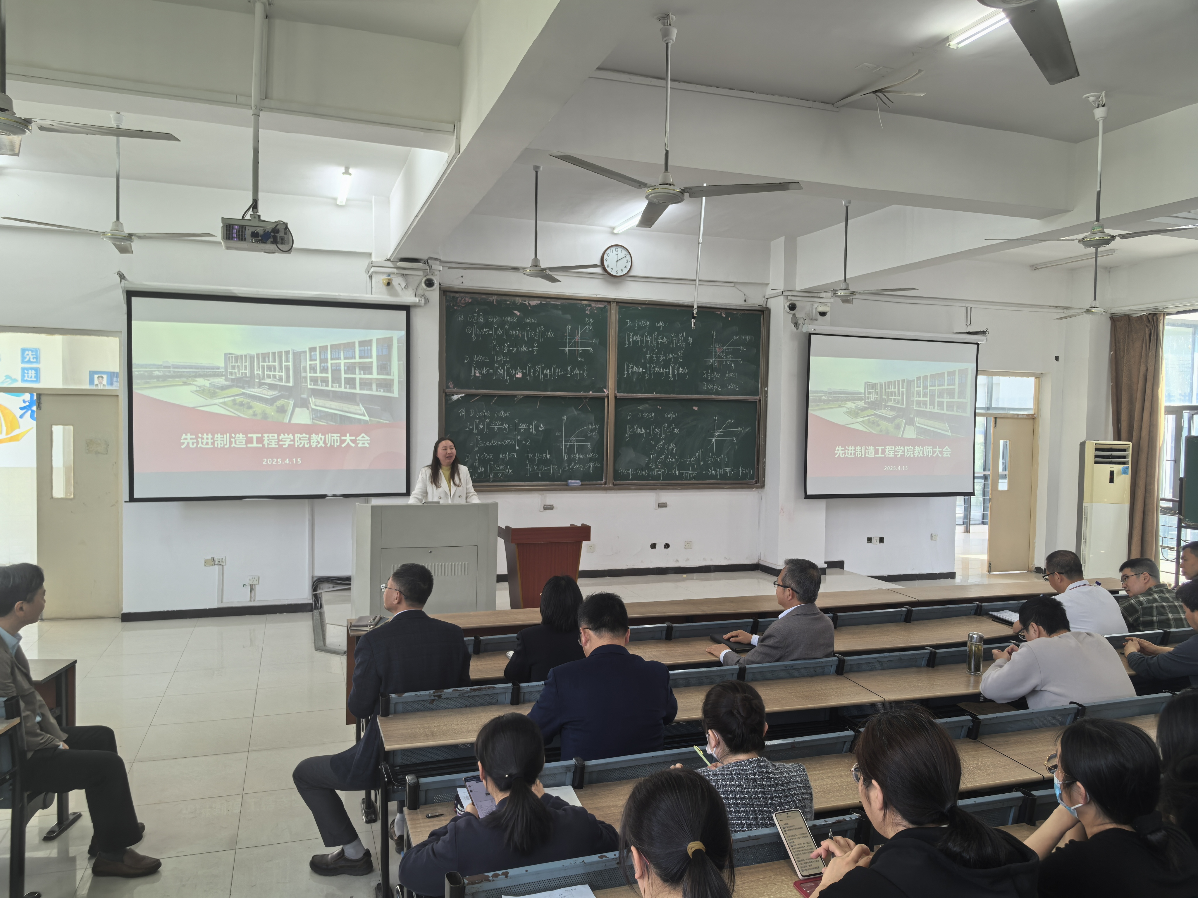 为持续深化作风建设,进一步推动中央八项规定精神在学院落地生根,2025年4月15日,先进制造工程学院在38-3JT组织全院教职工召开深入贯彻中央八项规定精神学习教育集中学习会议,本次会议由学院党委书记杜娟主持,学院全体教职工参会。