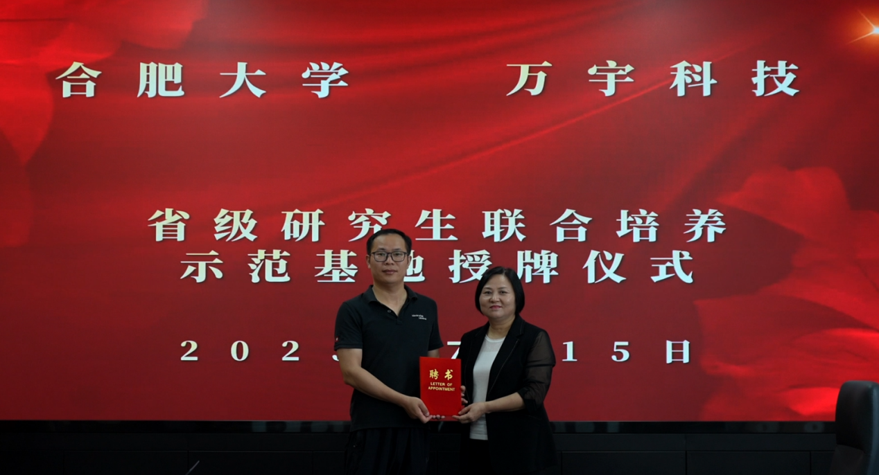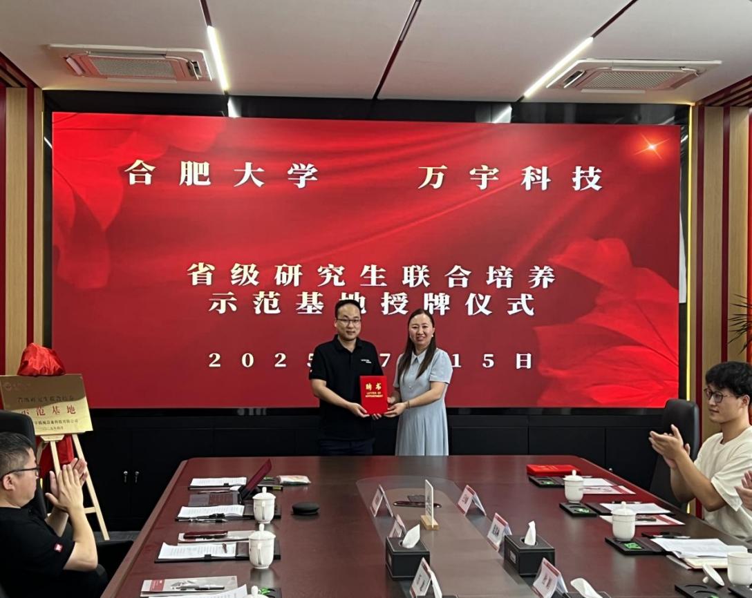 此次示范基地的授牌,标志着双方在高端装备制造领域研究生培养、产学研融合方面迈入新阶段,是我院深化“大院高企”协同育人模式的又一实践成果,也是万宇科技构建“产教学研用”生态链的重要一环。双方将以基地为纽带,推动教育链、人才链与产业链、创新链深度融合,为安徽省高端装备制造产业培养更多“懂技术、通产业、能创新”的新质人才,助力长三角智能制造产业高质量发展。