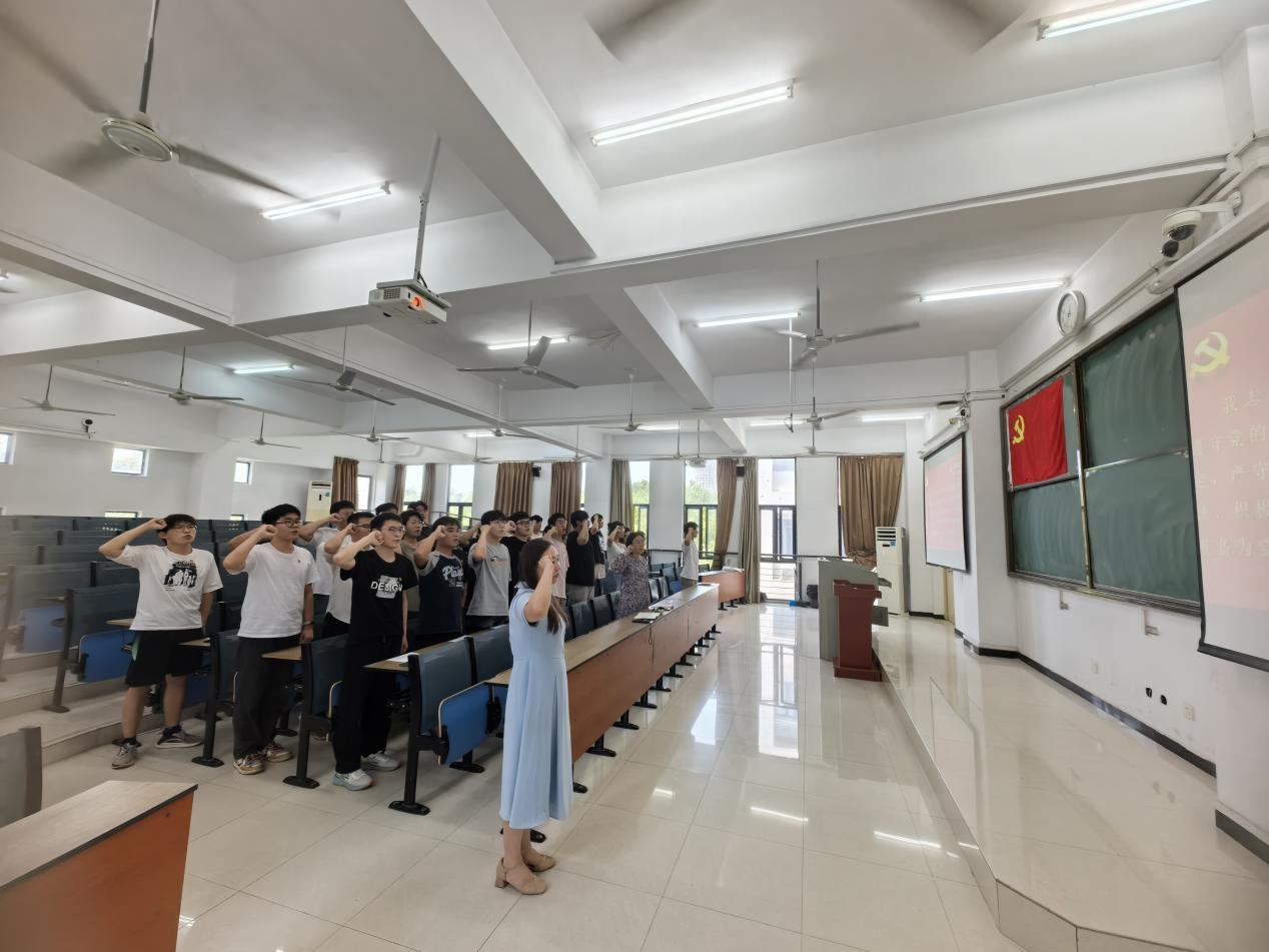 为筑牢新发展党员理想信念根基,激发使命担当,6月17日中午,在庄重而热烈的氛围中,先进制造工程学院党委在38栋3阶梯教室举行2025年上半年新发展党员集中入党宣誓仪式。学院党委书记杜娟和党委副书记蔡灵美同志出席仪式并作寄语讲话,31名新发展党员以崭新的精神面貌,共同迎接这一神圣而光荣的时刻。仪式由机制学生党支部书记威力旺主持。