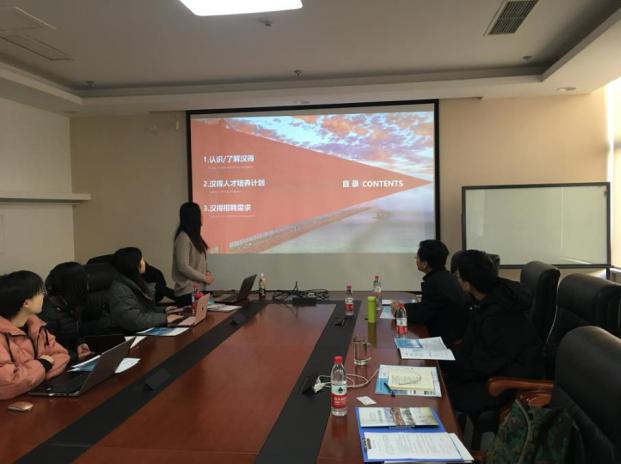 1228日下午,宋书记一行来到上海汉得信息技术股份有限公司,技术发展部副总经理谢声声女士携部门成员对宋书记的到来表示了诚挚的欢迎。谢女士为宋书记介绍了汉得公司概况,汉得为中国领先的IT咨询服务提供商,拥有八大国内基地、三大海外基地、十大参控股公司以及全球化IT服务能力。与此同时,谢女生还以PPT上图文并茂的形式展示了汉得的服务能力框架,发展历程以及汉得的部分客户。在介绍中,谢女士还着重讲述了汉得人才培养体系——汉得学院,她表示,这是为了满足汉得自身发展以及企业输送多重要求而设立。在双方进行愉快洽谈中,宋书记跟在公司实习的15级计科系学生进行了亲切交流,并向在座人员介绍了我校的基本情况和我系毕业生的就业情况,并就认知实习、毕业实习的日程安排与公司人员进行了商讨,最后表达了对汉得在春招来临之际前来学校考察诚挚的欢迎。谢女士代表公司表现出了浓厚的兴趣,希望立即着手实施与我系开启合作模式,诚邀19届电子系毕业实习生的加盟,共赢未来。