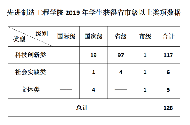 先进制造工程学院2019年学生获得省市级以上奖项数据