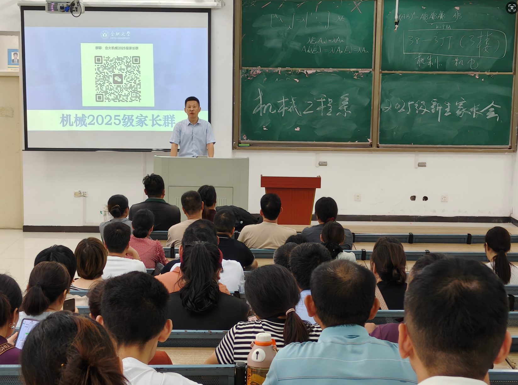 9月8日中午,在2025级新生开学之际,为搭建家校沟通桥梁,帮助新生家长深入了解学院办学特色与人才培养体系,凝聚家校育人合力,机械工程系在38-3JT教室成功举行了2025级新生家长见面会。先进制造工程学院党委书记宣跃文、机械工程系主任吴其林、机械电子工程专业主任夏小虎、专业教师姜海、2025级新生班主任查从燚以及200余名新生家长齐聚一堂,共话学子成长与未来发展。