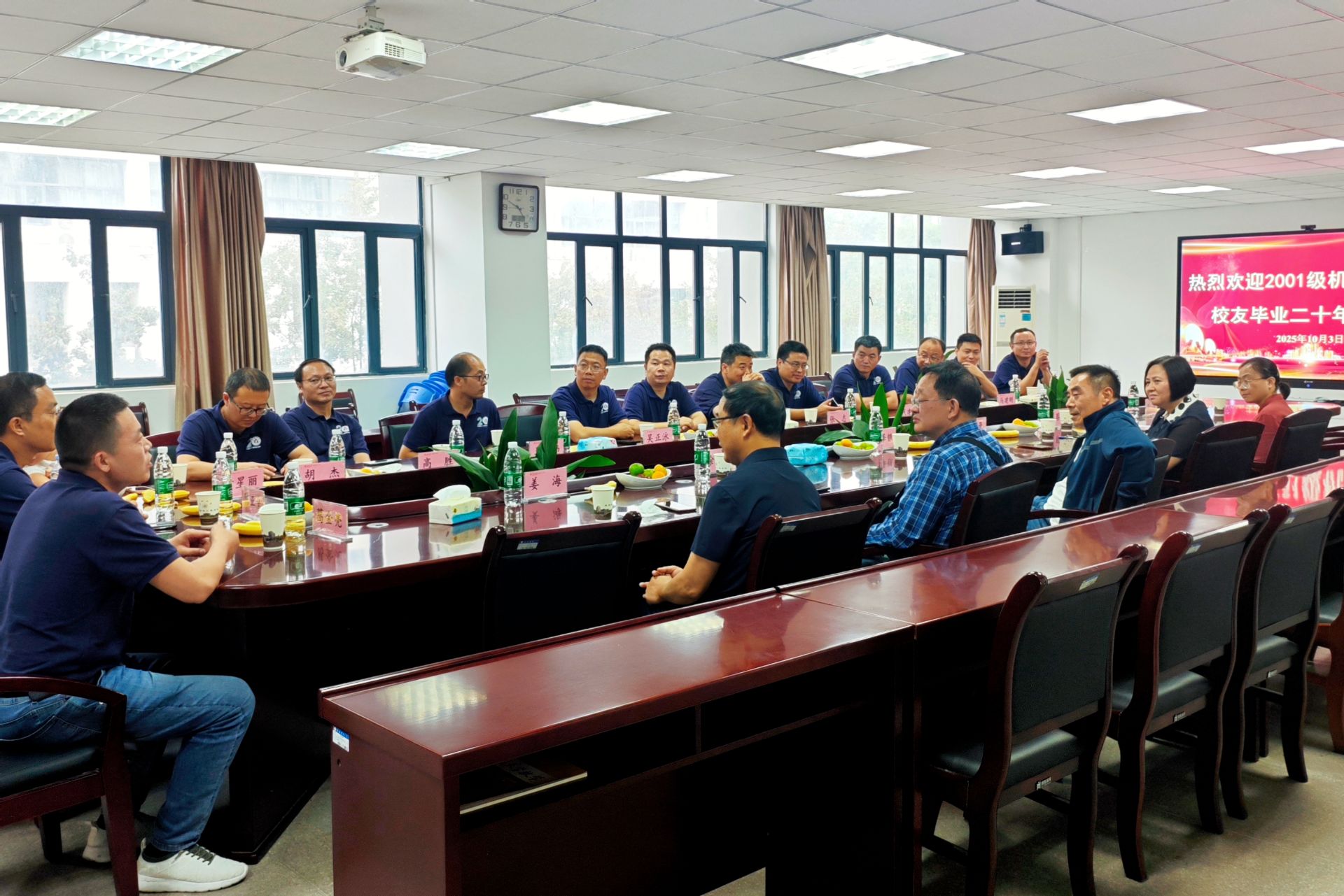曾经教授2001级机制一班的4位老师专程到场,与校友围坐畅谈。有的分享深耕机械制造领 域成为行业骨干的经历,有的讲述依托专业知识在智能制造赛道创业的成果。老师们认真倾听、不时赞许,结合课堂趣事与班级活动回忆校友青春模样,现场笑声不断,师生情、校友情愈发浓厚。