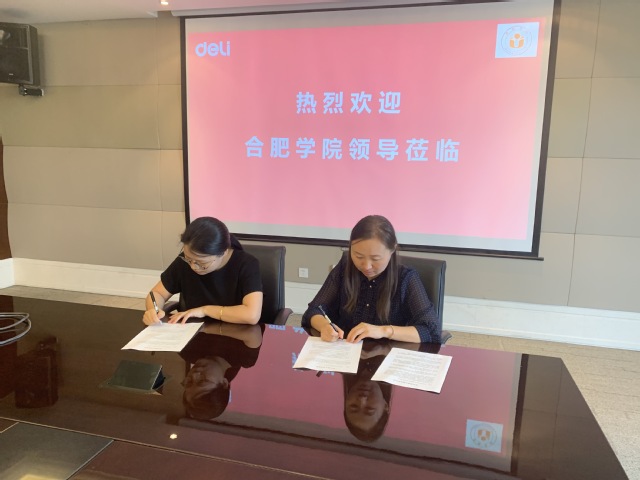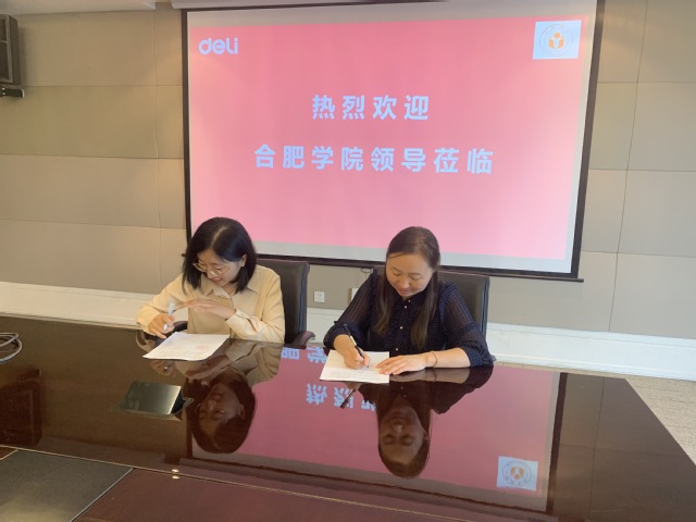 座谈中,邵莎莎介绍得力集团目前拥有优美的绿色生态环境、一流的现代办公大楼、配套的宿舍、食堂等基础设施,完全满足产学研一体化基地的建设需求;同时,集团也得到宁海县人民政府的高度重视,拥有各项政策与资金支持,处于快速发展、求才若渴的黄金时期。在这样的契机下,正想通过校企合作,建立深度融合的产学研基地,能够将高校的人才优势转化为行业的经济产能,实现企业与学校的快速发展,开拓合作双赢新局面。李秀娟介绍了学院学科专业建设、人才培养等基本情况,希望企业在学生实习、人才对接、技术支持等方面进行合作,促进校企深度融合,实现双方合作共赢。杜娟指出,合肥学院与得力集团具有深厚的合作底蕴,合肥学院为得力培养了很多优秀的技术技能型人才,为得力的快速发展提供了人才支撑。得力集团在公司制度、薪资体系等各方面非常完善,希望实现院企联动共同培育人才的良好生态环境,后续能在人才培养、学生实习就业、党建共建等方面开展全方位合作,打造出具有鲜明特色的大学生就业实习基地。