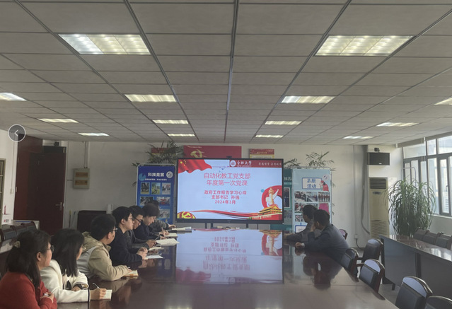 4月9日下午,自动化系教工党支部在38-205会议室开展党课学习。党支部书记孙强教授为支部党员围绕《政府工作报告》学习讲授党课。