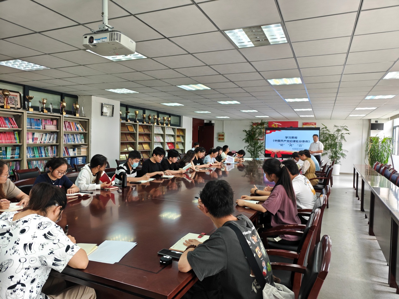 为深入学习贯彻习近平总书记在中国共产党第二十届中央纪律检查委员会第三次全体会议上的重要讲话,推进党纪学习教育,6月11日,先进制造工程学院党委委员、副院长胡国华在35#305为支部成员解读《中国共产党纪律处分条例》,为电子信息工程教工党支部、通信工程学生党支部成员讲党课。