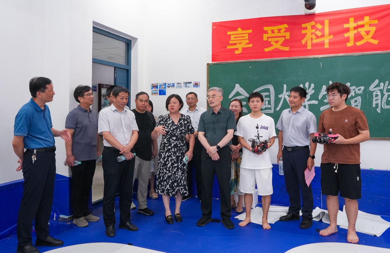 7月25日上午,校党委书记邬平川、校党委委员、副校长白义香一行冒着酷暑走访看望我院暑假期间留校参加学科竞赛的集训队师生。 在先进制造工程学院大学生工程实践与创新教育中心创新创业实训室、智能控制实训室,邬平川亲切看望了备赛2025年全国大学生电子设计竞赛、第二十届全国大学生智能车竞赛的指导教师及学生。 邬平川察看了电子爱好者协会学生科创竞赛开展情况,听取了电子爱好者协会比赛成果和创新模式、全国电子设计竞赛备赛状态、全国大学生智能车竞赛赛事准备等情况介绍,详细了解了暑期集训、参赛备赛情况及学习生活情况,观摩了备赛学生现场演示智能车赛道竞逐。 邬平川对师生不惧酷暑、辛勤付出、专心备赛给予了充分肯定,对第二课堂在创新创业教育中发挥的重要作用表示高度认可。他希望大家高度重视参赛机会,充分利用暑期宝贵时间,全力以赴、攻坚克难,在备赛中积累宝贵经验,在竞赛中提升综合素养,真正做到“以赛促学、以赛促训、以赛促教”,并叮嘱大家注意防暑降温,劳逸结合,平安备赛,勇创佳绩。 校党政办、学工部、后勤集团等相关职能部门及先进制造工程学院全体班子成员陪同调研。