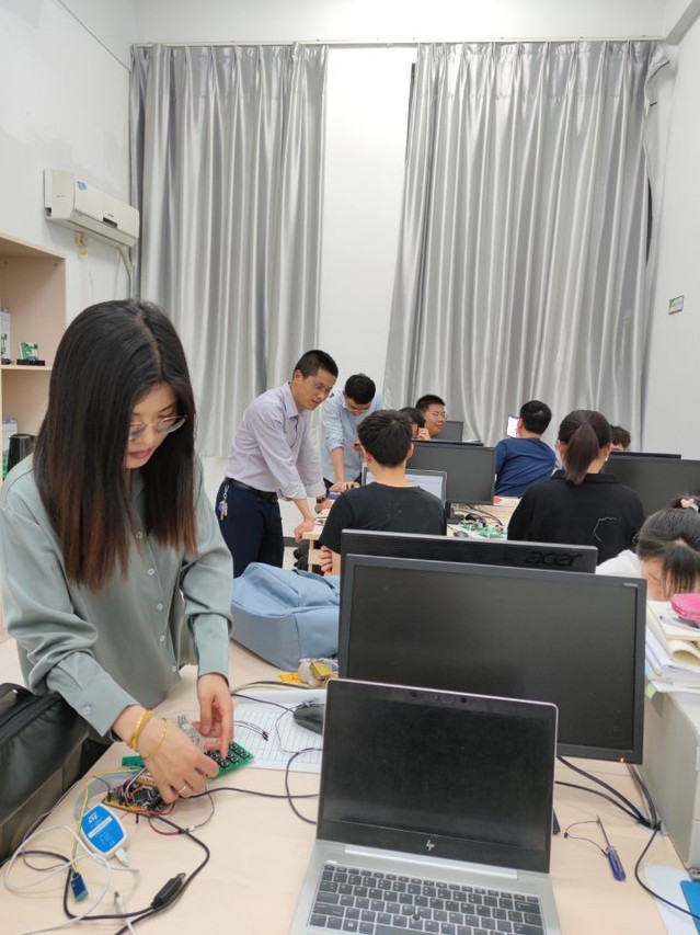 “不忘教育初心,牢记育人使命”,为切实开展好“我为身边师生办实事”主题党日活动,2021年5月11日晚,党员教师在38栋108对学生进行安徽省机器人大赛-单片机嵌入式系统应用技能竞赛进行赛前辅导。自2021年3月份起,支部党员教师卢军、张胜、沈凤娇和李瑶积极关注并辅导参赛学生训练情况,直至大赛开始。 本次活动顺利开展离不开支部党员教师对学生的关心和对教育事业的热爱,支部中心党员教师真正做到了为学生服务,为学生答疑解惑,使学生受益,树立了良好的典范。