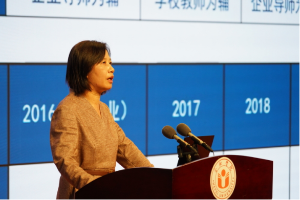 Professor Wu Chunmei, HFU President, gives a speech on “Specialty, Employment and Industry: A Trinity Talents Training Mode of Hefei University”, which establishes a dynamic adjustment mechanism of specialty to cultivate talents with innovation and international vision.