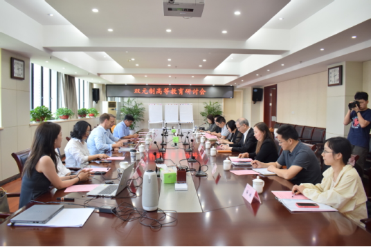 On the afternoon of May 28, 2024 Symposium on Dual-System Education (Continental Class Program) was held in HFU. Present at the meeting were Professor Lange and Professor Schmidt, heads of dual-system project of University of Applied Sciences Emden-Leer in Germany, heads of dual-system project and Human Resources Department of Continental Group, Wang Qidong, Chair of HFU Council.