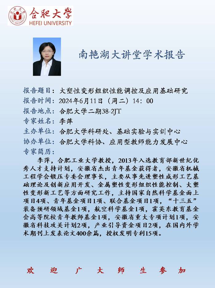 【南艳湖大讲堂】大塑性变形组织性能调控及应用基础研究