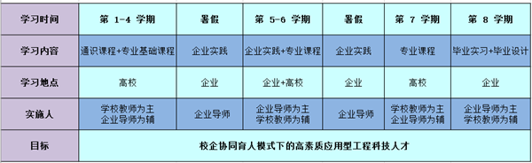 实践项目的选择由校、企双导师共同协商,对所选实践项目的难度和广度进行阶段分解,保证在毕业实习和毕业设计项目上能够对前期的实践项目继续延伸提高,并且结合后续的理论学习后,实现了第三阶段的校企协同实施,提升了专业能力。为强化实践能力,第四和第五学期及第六和第七学期的暑期也全部安排进行实践教学。