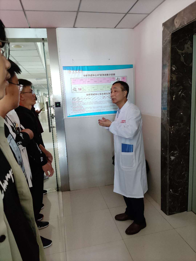 杨本宏主任热烈欢迎同学们到来,他简要介绍了分析测试中心的概况,举例介绍了扫描电镜在钢铁制造行业的应用,强调了分析检测对于科研及制造业的重要性。徐启圣副主任负责联系、组织协调参观事宜并维持秩序。徐泽忠老师负责发放中心仪器设备宣传册,以及新生的参观签到。陈仕云老师向同学们讲解了激光共聚焦显微拉曼光谱仪和傅里叶红外光谱仪的主要应用。王玮老师介绍了电感耦合等离子质谱仪的主要构造及应用范围。马新兰老师详细地讲解了热重分析仪、差示扫描量热仪在材料分析方面的应用。