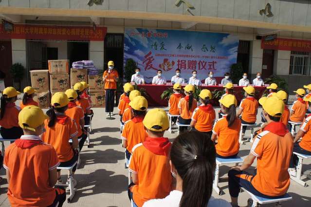 本次捐赠是安徽省教科文卫体工会联合合肥学院、安徽省建筑大学、安徽医科大学附属阜阳医院等单位对老观乡中心学校(小学部)留守儿童进行爱心捐赠。其中安徽省教科文卫体工会捐款2万元,合肥学院、安徽建筑大学、安徽医科大学附属阜阳医院为留守儿童共捐赠书包420支。