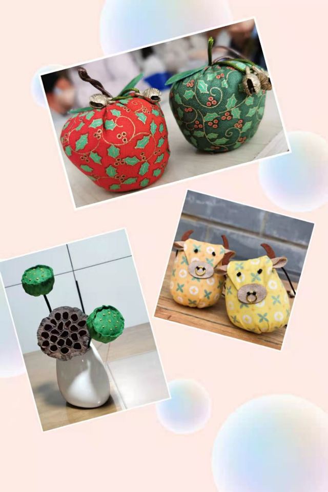 随后是“闻香识佳人 香囊抗疫强”——三·八节制作香囊活动。香囊制作老师通过远程在线解读了香囊的历史和文化意义。制作活动开始后,校工会崔国庆主席亲临现场,给广大女教职工鼓劲加油,大家热情更加高涨;穿针引线的功夫也不容小觑,一份份香囊材料在她们的精心设计、细致缝合下,变成了手中栩栩如生的“金牛”、“莲蓬”、“向日葵”等。
