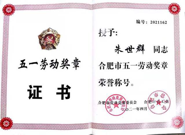 5月13日上午,合肥市文教工会主席胡云祥一行来到朱世群同志家中,看望慰问其家属,代表市总工会追授朱世群同志“五一劳动奖章”,并送来了慰问金。我校工会主席崔国庆陪同参加慰问。
