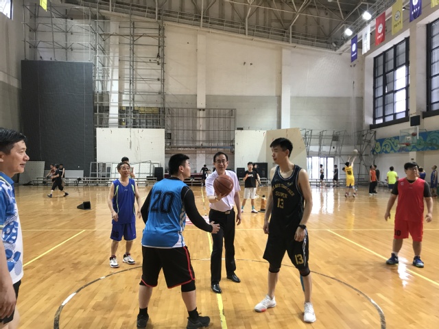 崔国庆回顾了篮协这些年的发展情况,肯定了协会为提高教工的身体素质和篮球技艺所付出的辛劳。今年适逢中国共产党成立100周年,希望大家在比赛中友谊第一、比赛第二,赛出精神、赛出风格,同时注意场上安全。随后他为比赛开球。