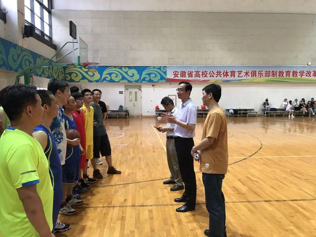 合肥学院第九届教职工篮球联赛于6月8日下午4点30分在合肥学院体育馆开赛。工会主席崔国庆出席了开幕式并讲话。