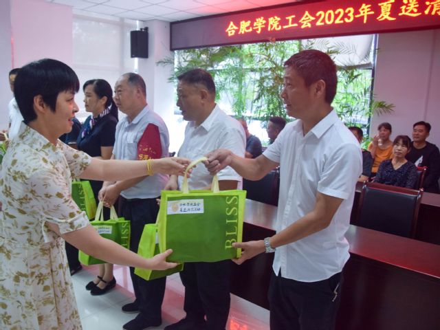 7月18日上午,我校于行政楼一楼会议室举办了主题为“清凉度盛夏,安康伴我行”的2023年夏季“送清凉”活动。校工会主席宣文、副主席邵宏到场慰问后勤集团的职工代表。