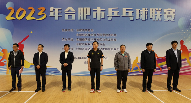 为深入贯彻学习党的二十大精神,全面落实全民健身国家战略,扎实推进“省市快乐健身行动”,由合肥市体育局、合肥经济技术开发区管理委员会主办的“2023年合肥市乒乓球联赛”10月14日在经开区南艳湖全民健身中心隆重举行。安徽省人大常委会副主任韩军宣布2023合肥乒乓球联赛开赛;原安徽省委常委、合肥市委书记宋国权为2023合肥乒乓球联赛开球。