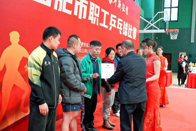 11月29日-30日,由合肥市总工会主办的2023年合肥市职工乒乓球比赛,在合肥市职工体育活动中心德仁综合体育馆举办。本次比赛竞赛项目分为混合团体赛、男子单打和女子单打,由各县(市)区、开发区总工会,各产业、直属工会,各相关单位组成的19支队伍200余名职工参加,为期两天的赛程紧张而激烈。各参赛队伍秉持“友谊第一、比赛第二”的体育精神,在团结友爱的氛围中,充分展示各自的实力。最终,经过激烈的比拼,各项目决出名次。
