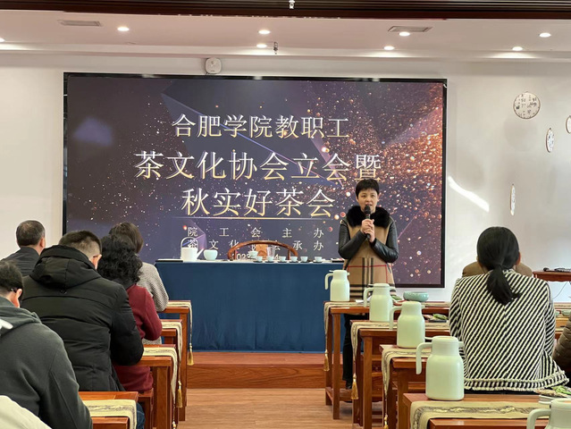 2023年11月14日,由合肥学院工会主办和茶文化协会协办的立会暨秋实好茶会在55栋708南艳茶舍举办,邀请校工会宣文主席出席本次活动,特邀嘉宾安徽省茶文化研究会副秘书长朱砚文老师、委员方林老师及全校协会会员参加。