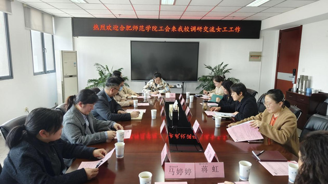 3月21日,合肥师范学院工会主席宋学峰一行6人来校调研女工工作。校工会主席宣文、校女工委委员及工会相关工作人员参加交流会议,会议由校工会主席宣文主持。