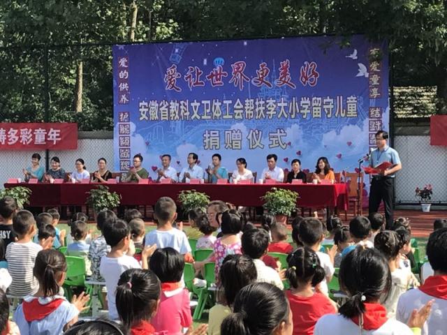 校工会带着省总和合肥学院的慰问,向阜南李大小学送去了文体用品和慰问费。孩子们拿到慰问品喜不自禁。