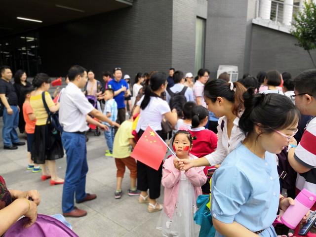 合肥学院校园内,小朋友们拿着小红旗、贴着彩贴跟随着家长欢快着跑动着,嬉戏着,家长在孩子游玩中美美的,拍照着。学生记者和摄影爱好者们在家长和孩子互动中,抓拍着美好瞬间。