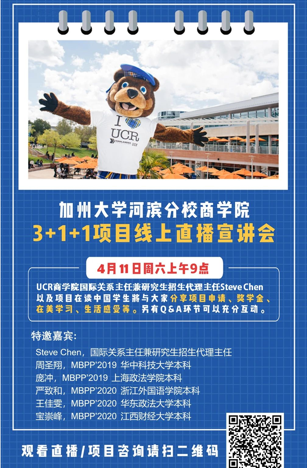 美国加州大学河滨分校项目介绍:3+1+X MBPP线上宣讲会