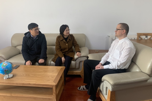 117日上午,在中国传统佳节春节来临之际,吴春梅校长看望慰问假期留校的德籍专家汤卫思(Thomas Weise)教授,为他送去亲切慰问和新春祝福。国际交流合作处处长、中德人才交流中心主任张慧等人陪同看望。