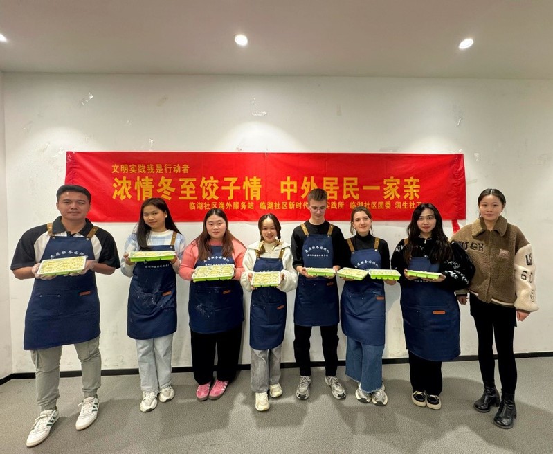 浓情冬至饺子情,中外居民一家亲 ——我校留学生深入临湖社区,参与社区包饺子送温暖活动