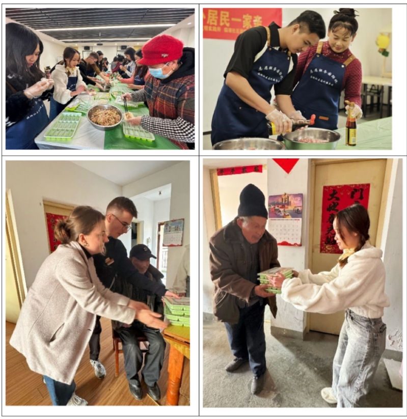 冬至之日,饺子飘香,为了增进留学生对我国传统节气文化的认识,感受中国社会对老年群体的关注与关心,弘扬中华民族尊老敬老优良传统,按照我院社会志愿实践课程规划,7名来华留学生深入临湖社区开展了以浓情冬至饺子情,中外居民一家亲为主题的志愿服务活动,其他15名选课同学参与了图片直播,并针对中国节气文化与敬老话题展开了热烈讨论。